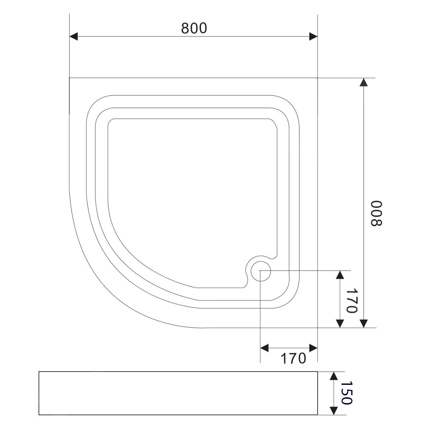 - afmetingen: 800 x 800 x 150 mm