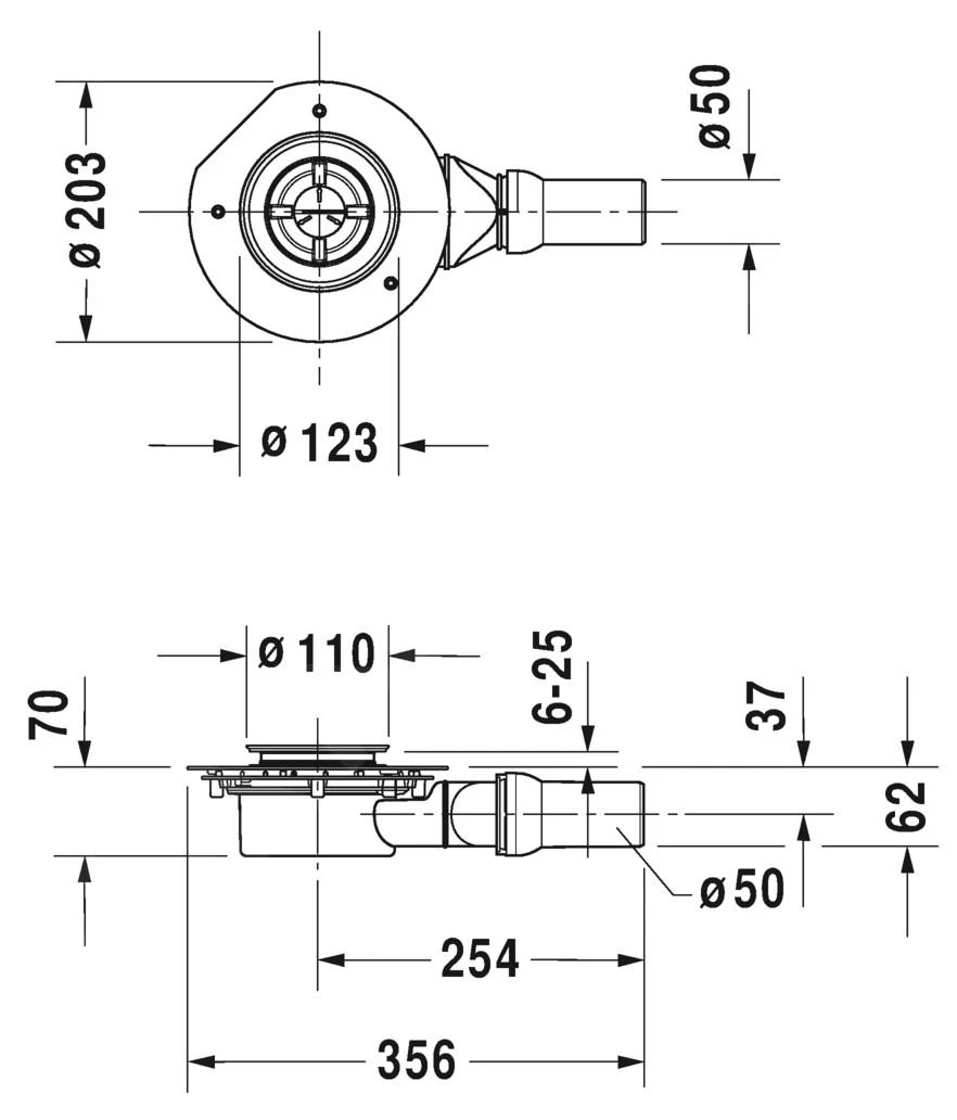 - voor installatie met steunpoten of ondersteuning voor douchebak