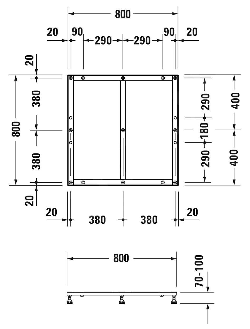 - voor douchebak 800 x 800 mm