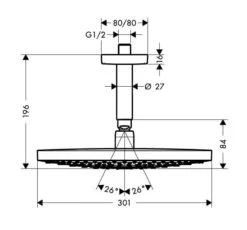 3 soorten stralen: Rain, SmartRain, Jet - Rainshower 380 mm douchearm (28361000)