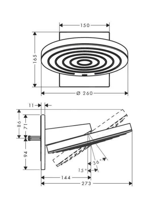 - grootte douchekop: 260 mm XXL Performance