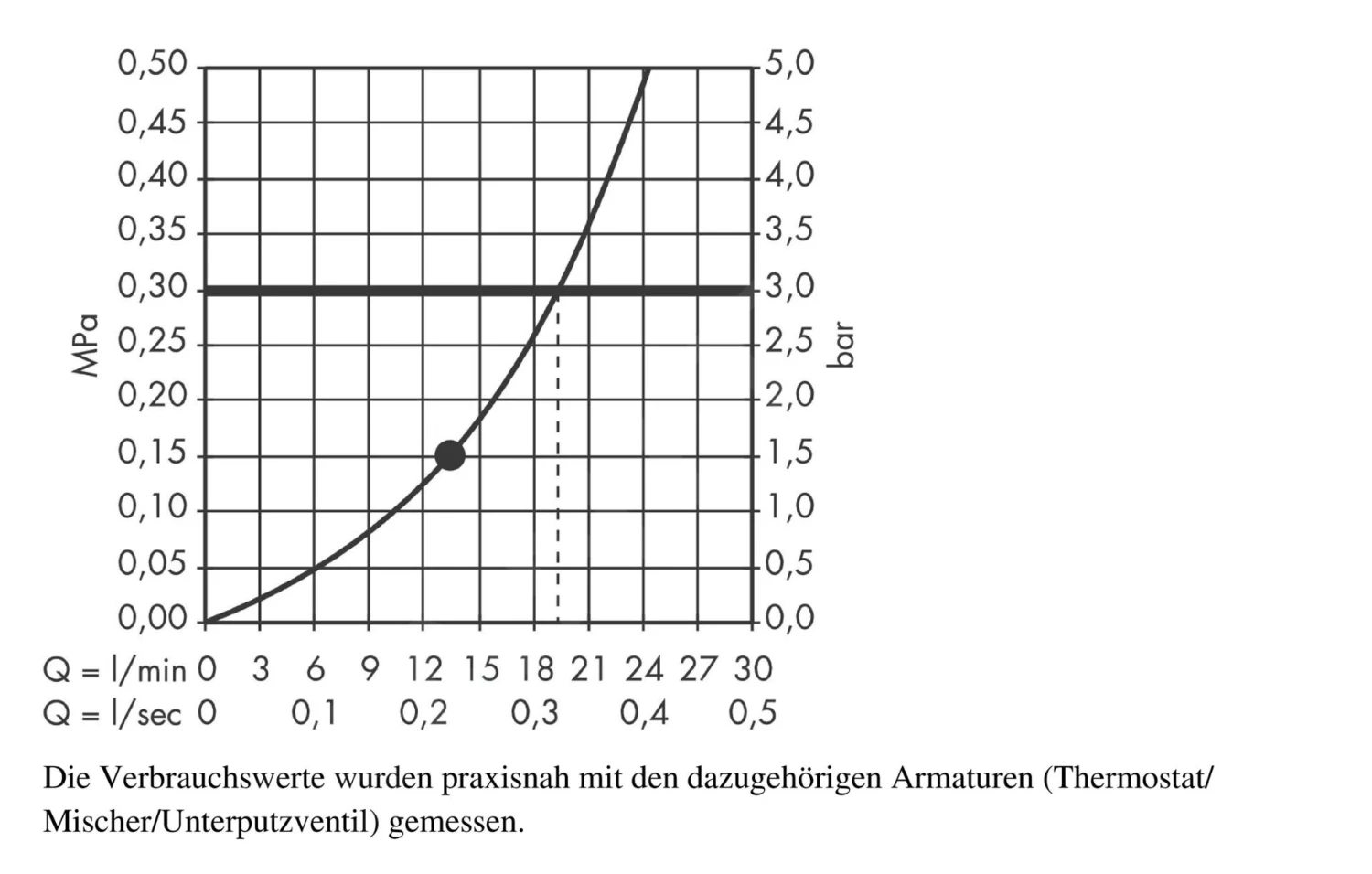 - doorstroming bij RainStream (bij 0,3 MPa): 19 l/min