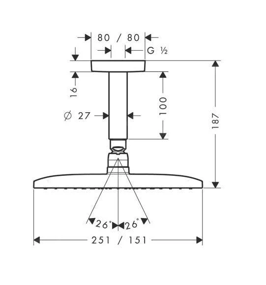 Hansgrohe Raindance New – Hoofddouche E 240 AIR 1jet EcoSmart Met Plafondbevestiging 100 Mm, Chroom 27383000