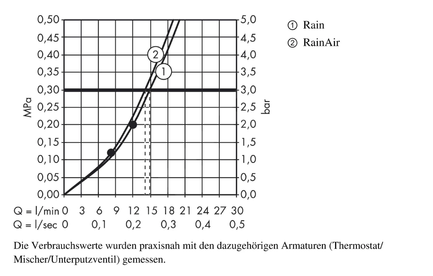 - doorstroming van de RainAir straal (bij 0,3 MPa): 15 l/min