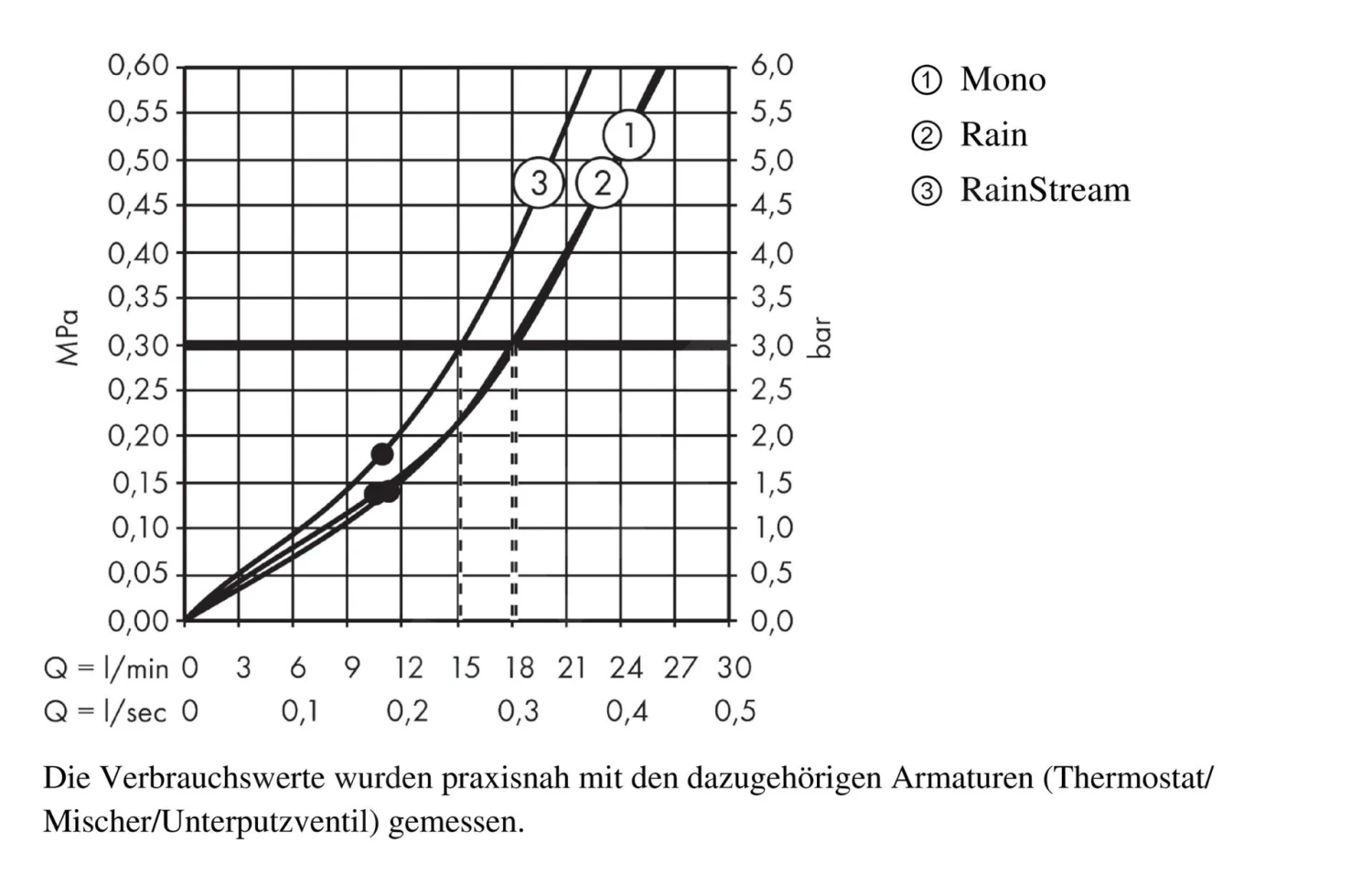 - doorstroming RainStream (bij 0,3 MPa): 15 l/min