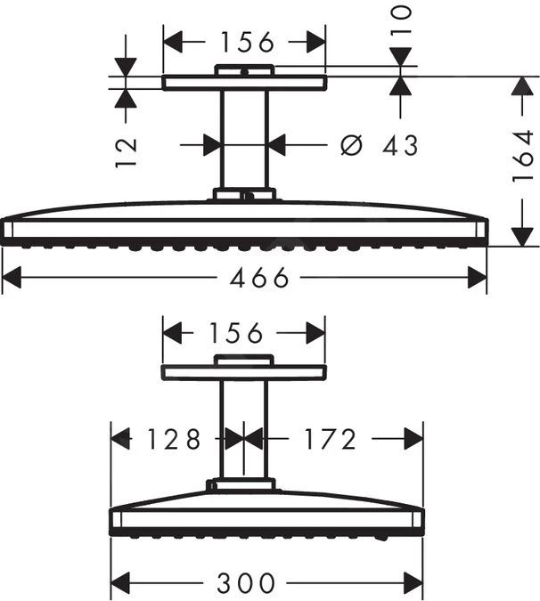 - grootte van de douchekop: 460 x 300 mm