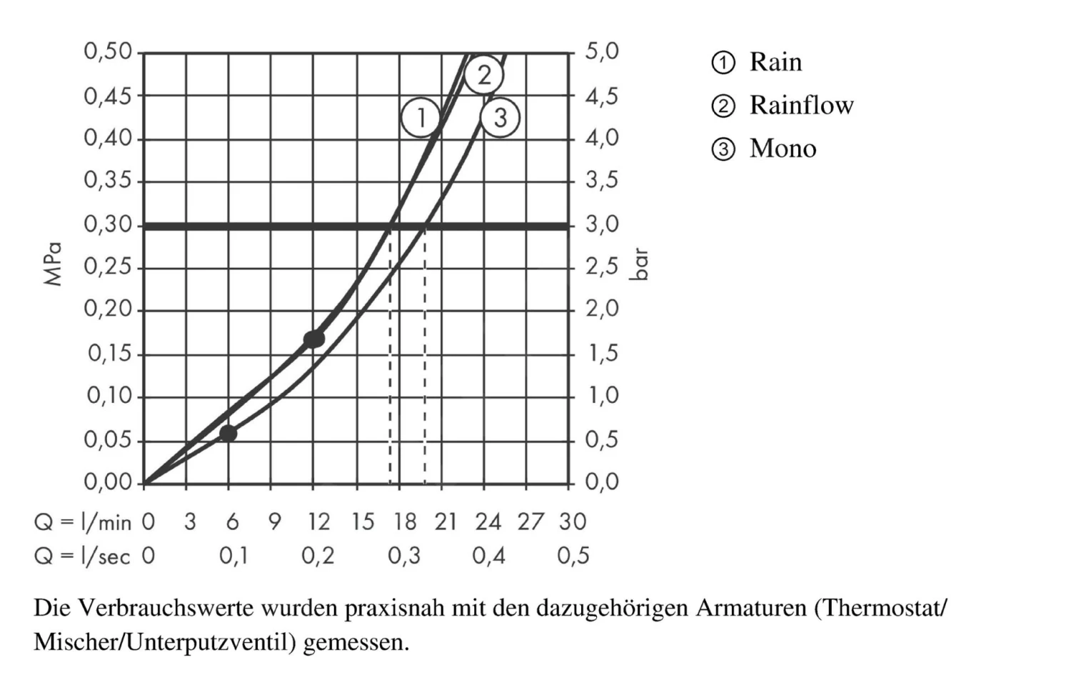 - doorstroming RainFlow (bij 0,3 MPa): 17 l/min