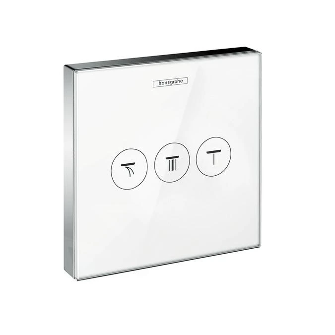 Kies de Hansgrohe ShowerSelect klep met een glazen oppervlak voor drie functies, bestemd voor inbouw en geniet van het moderne ontwerp in combinatie met wit en chroom en een eenvoudige en intuïtieve bediening!