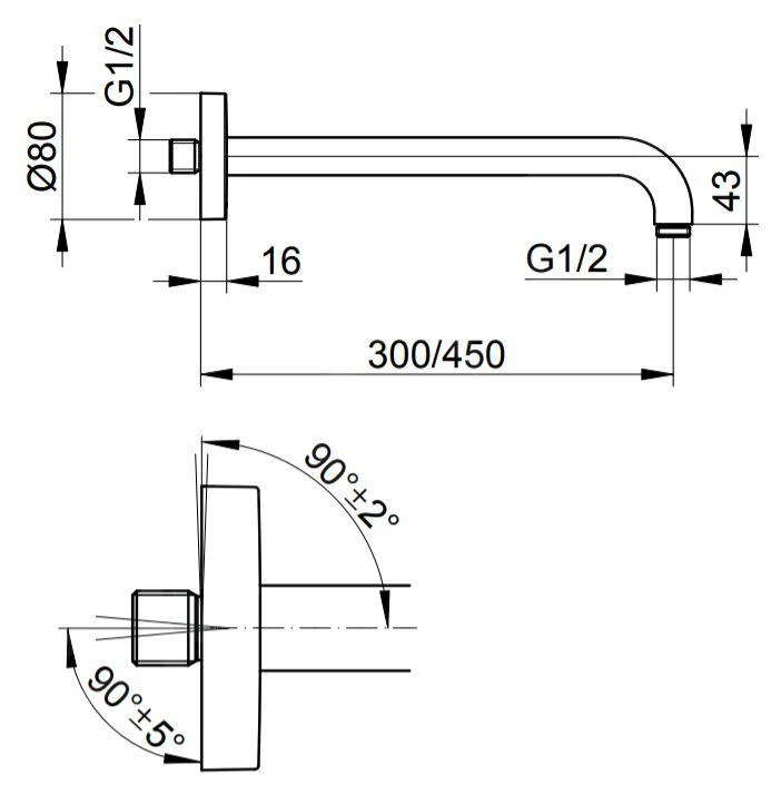 - mogelijkheid tot afstelling tot de wand (90° ± 2°)