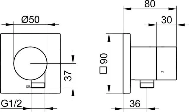 - vierkante afdekrozet, afmeting 90 x 90 mm