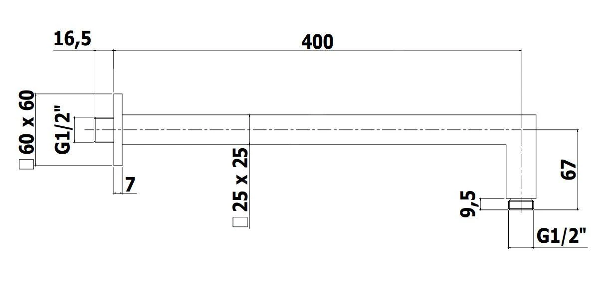 SQUARE montagearm, voor hoofddouche