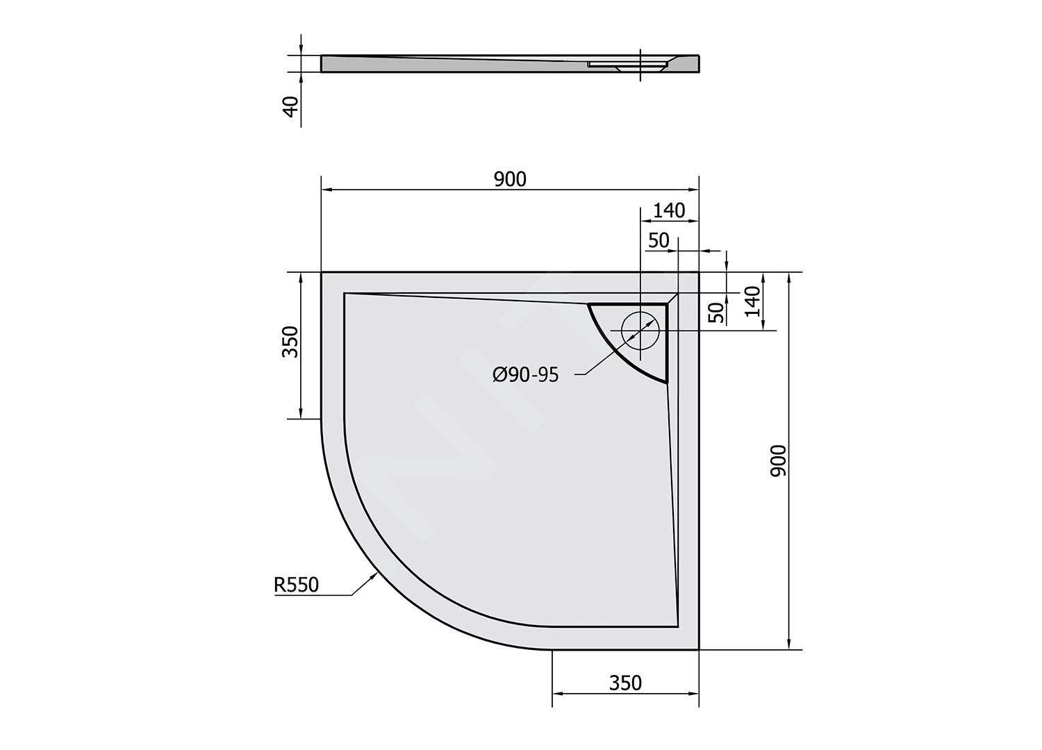 - afmetingen: 900 x 900 x 40 mm, R550