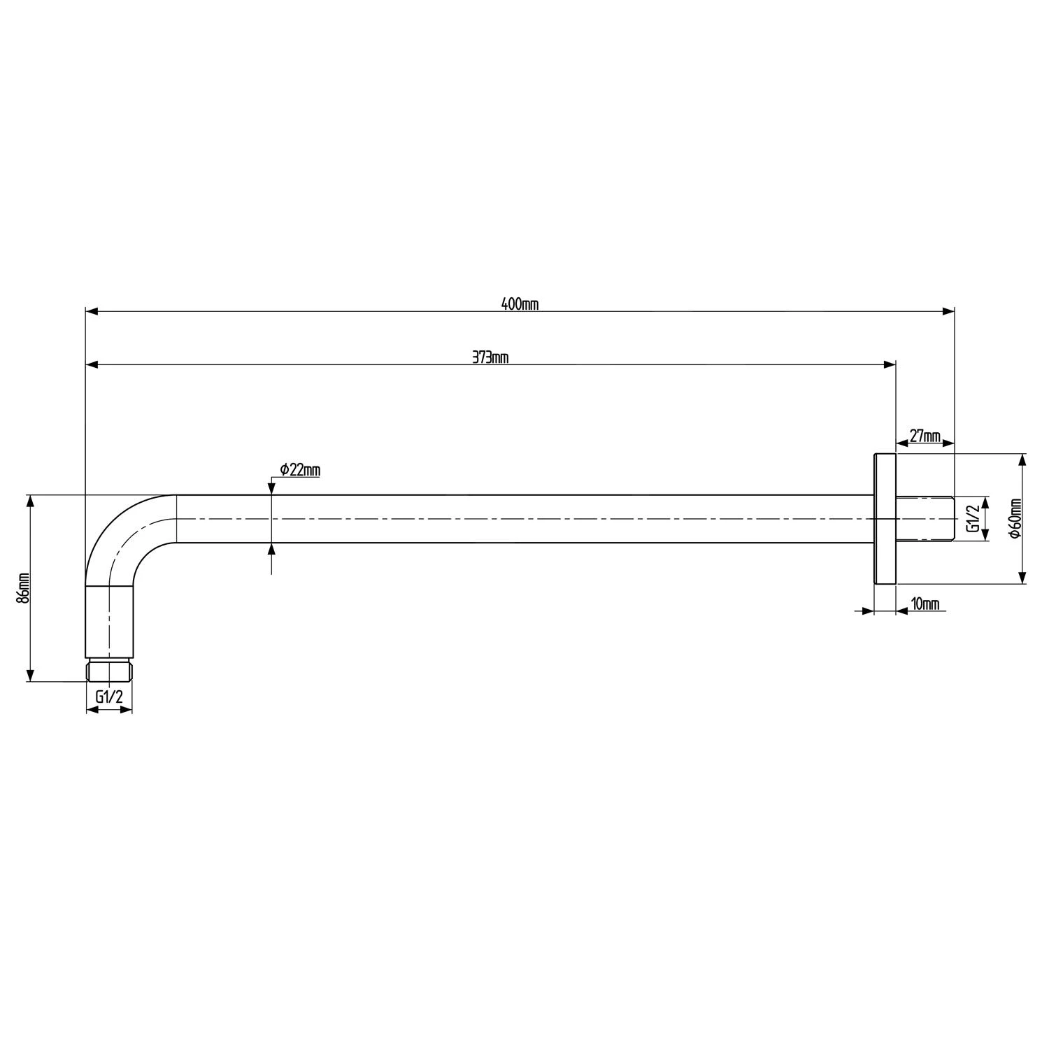 - lengte douchearm 400 mm